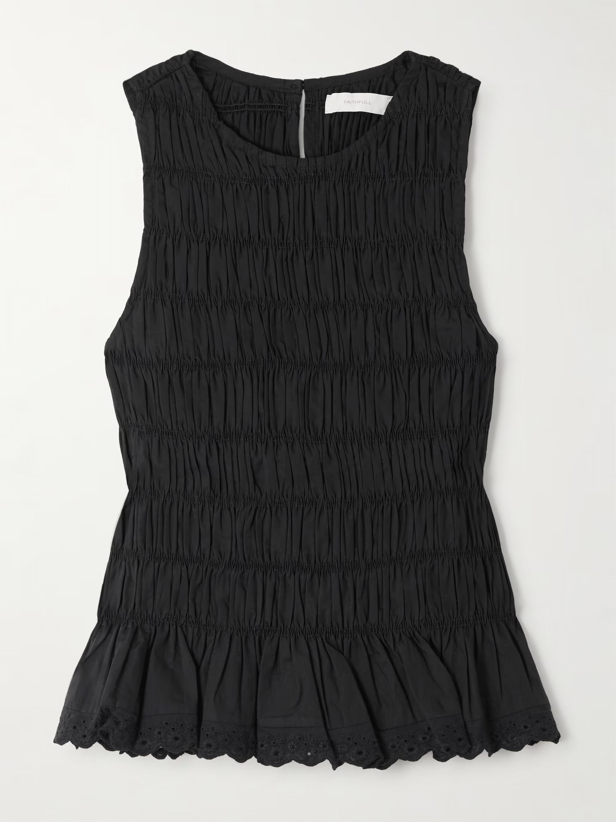 Thea shirred broderie anglaise-trimmed cotton top
